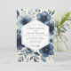 Deep Blue Floral Romantic Wedding Invitation