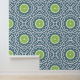 This captivating peel and stick wallpaper combines timeless elegance with modern flair. The intricate design draws inspiration from traditional Moroccan tiles, creating a stunning visual impact for any space. The deep blue background sets the stage for an interconnected white lattice framework. Within this lattice, symmetrical green medallions with lighter green centres add a refreshing touch. The graphic style seamlessly blends historical charm with contemporary aesthetics. Ideal for accent walls, bedrooms, or home offices.