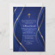 Deep Blue Metallic Gold Orthodox Christian Baptism Invitation