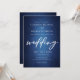 Beautiful deep shades of dark blue create a texture like water on this lakeside wedding invitation. Perfect waterfront invites for a ceremony in the evening by the lake with a water view. Elegant white minimalist script with your details on a gradient that feels like you are swimming underwater at night.