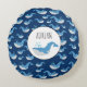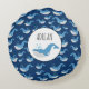 Deep Blue Ocean Whale Pattern Custom Name Round Cushion