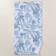 Ocean-Themed Beach Towel, Monochrome Blues, Watercolor painted design. Octopus