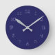This deep blue background round clock has has Kristie Hubler's http://fabricatedframes.com logo inspired fabric font, with fabric twirled into the shape of numbers (also letters, upper and lower case designs available), in a light navy colour on a deep blue navy background. Great for fibre artists, quilters, sewists, designers, those in the surface design / fabric design / textile designers / quilting. Fabric font copyright protected by Kristie Hubler.