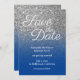 Deep Blue Silver Ombre Glitter Save the Date Invitation