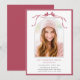 Invite friends and family to celebrate the graduate with this elegant invitation, featuring a deep blush ribbon bow with a arch photo.