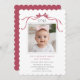 Invite friends and family to celebrate the first birthday with this cute invitation, featuring a deep blush pink ribbon bow and a photo.