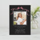 Deep Blush Ribbon Bow Graduation Party Photo Black Invitation