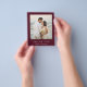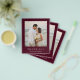 Classic style budget wedding thank you card flyer featuring a simple yet elegant design in a deep burgundy color that is perfect for a fall wedding or a winter / Christmas wedding. Use the template to easily add your favorite photo.