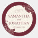 Seal your envelopes with round stickers featuring deep burgundy blooms and couple's names and the wedding date on a soft ivory centre. Each seal feels like a final touch of romance before guests even open the envelope. Coordinates with other products from the wedding suite.