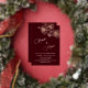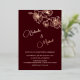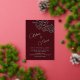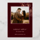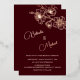 Minimalist design with real rose gold foil floral sketch cherry blossoms and on a deep burgundy background. Modern botanical hand drawn wedding invitation with bride and groom names in an elegant calligraphic script. With your photo on the backside.