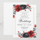 This design features a dramatic arrangement of deep red and charcoal blooms, evoking a sophisticated and moody aesthetic. A delicate gold border frames the artwork, adding a touch of classic elegance to the rich botanical composition.