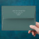 Elegant green envelope with exquisite watercolor greenery eucalyptus details in envelope's inside. Option to add guest name(s) and address on the front and your return address details on back's top flap -OR- erase characters from text boxes to remove and receive envelopes with no text. NOTE FOR "PRINTING" GUEST(S) NAMES AND ADDRESS ON THE FRONT: please make and individual order for "each" guest envelope, add into shopping card, then come back to add the next guest name...repeat until you finish all names on your guest list. Also available in white, mist blue or beige tan. Part of our "Elegant Greenery Eucalyptus Wedding and Events" collection, with a variety of coordinating products available.