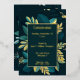 Gilded leaves deep green invitation. Easily personalise for weddings, showers, birthdays, retirements and any party.