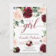 Deep Merlot Florals Maroon and Navy It's A GIrl Invitation