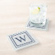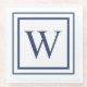 Deep Navy And White Square Border Monogram Glass Coaster