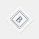 Deep Navy And White Square Border Monogram Napkin