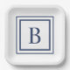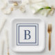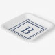 Deep Navy And White Square Border Monogram Paper Plate