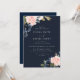 Deep Navy Blue & Blush Floral Wedding Invitation