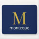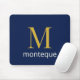 Deep Navy Gold Monogram Personalised Name Luxury Mouse Pad