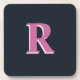 Deep navy pink monogrammed beverage coaster.