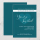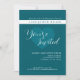 A simple, minimalist birthday invite in rich deep petrol, featuring a large “You’re Invited” in a handwritten-style script over a soft teal heart for a warm, welcoming feel.