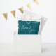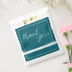 This simple, modern favour bag features a rich deep petrol background with “Thank You” in elegant handwritten-style script.