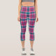 Deep Pink Blue Tartan Plaid Gingham Pattern Capri Leggings
