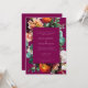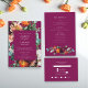 Make a statement with this elegant wedding invitation set against a rich plum purple backdrop. A captivating floral frame, bursting with colourful blooms and verdant leaves, encircles your wedding details elegantly presented in a central box. This design offers a perfect blend of classic romance and modern botanical artistry, ideal for any couple wanting to convey elegance and style. Let this beautiful floral announcement be the first impression of your joyous occasion, setting a refined and memorable tone for your wedding day.