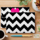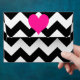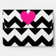 Deep pink heart shape against a black and white zigzag or chevron pattern.