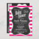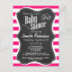 Deep Pink Horizontal Stripes; Chalkboard look Invitation Postcard