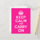 Deep Pink Keep Calm and Carry On Postcard