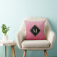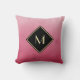 Deep Pink Watercolor With Black and Gold Monogram Cushion
