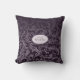This deep plum damask throw pillow embodies elegance and timeless charm with its rich plum background and soft lilac damask pattern. The sophisticated contrast of dark and light tones creates a luxurious, regal aesthetic perfect for modern or classic interiors. At the centre lies a customisable text space, allowing you to personalise it with names, wedding dates, or special messages, making it ideal for weddings, anniversaries, engagements, or elegant home décor. The plum colour symbolises passion, romance, and sophistication, while the ornate floral swirls bring an artistic vintage touch. This pillow adds a warm, opulent accent to living rooms, bedrooms, or wedding venues, perfect for those who love refined and meaningful décor.