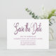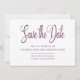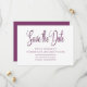 Elegant and deep purple plum and white design. Save the Date is written in beautiful script text. Your names, wedding date, and location follow. You can include an additional message on the back.