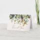 A chic Thank You beneath a draping bower of darkest purple grapes golden, sage, and deep green leaves. Inscribed with an unique font on pebble print image personal stationery card.