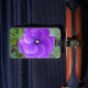 Featured growing on a bush is a very deep purple pretty Hibiscus flower.