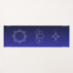 This mysterious dark purple mat features esoteric symbols representing 3 major chakras or dantiens, of head, heart and belly. Meditate on your yogic or spiritual journey while contemplating these symbols. The colour is deeply calming and grounding and the symbols are in pale sparkling silver. Slip into your practice on this lovely aesthetic mat. Perfect lovers of esoteric mysteries, chakras, and symbols.  Of course this mat can be used for meditation, pilates or other fitness practice.