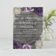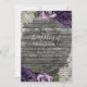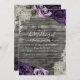 Deep Purple Roses Grey Rustic Wood Lace Wedding Invitation