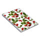 Notebook in an all-over print of deep red cherries, adapted from vintage botanical prints, on a white background