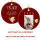 Deep Red, Butter Yellow & Gold Christmas Photo Ceramic Ornament