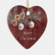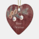 Deep Red Faux Linen (linen look) Pine Cones Ceramic Ornament