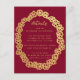 Deep Red Floral Wedding Details Faux Gold Wreath Enclosure Card