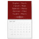 Deep Red Multilingual Calendar