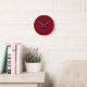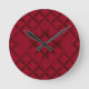 Deep Red Quilted Leather Pattern Round Clock
