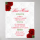 Deep Red Rose Floral Wedding - Bar Menu Poster