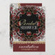 Exquisite deep red and silver satin design bridal shower party invitations in rich details with gold decorative borders - fully customisable - would suit those seeking something with a different style. Personalise to make it your one of a kind & unique invites | unique alternative designs for special occasions