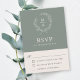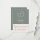 A tasteful and classic choice in wedding response cards, this design conveys a simple elegance in its text layout and classic style. A simple open laurel wreath of sketched leaves surrounds the monogram initial of the bride and groom. The elegant yet simple text template is ready to personalise with your initials and required RSVP date This response card is a versatile choice for weddings at any season of the year and for any wedding venue, whether a solemn religious ceremony or a secular type affair at a banquet hall, winery, museum, restaurant, private club, or a rustic wedding outside in nature. It is available in a variety of popular colours (shown here in the deep sage green and ecru) as well as many different paper types and weights.