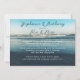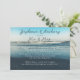 Blue ocean scene marriage announcement combined with an invitation to a reception for the newlyweds. Horizontal cards have a view from the beach, with crashing waves, as the background for custom text. Black script at the top for names and "Mr. and Mrs." with white printed text at the bottom to include private ceremony date and location with invitation information. Deep sea blue colours. If you change paper sizes, make sure all your text will fit and be printed well away from the edges of the paper.