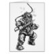 Deep Sea Diver holding short sword, black and white drawing