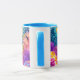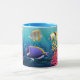 This two tone mug has colourful underwater scene of small fish and corals all around the mug. Sample handle and interior shown a sky blue colour.